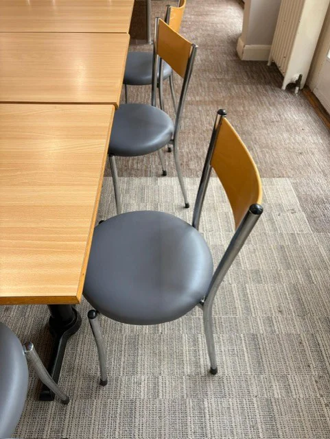 The finished seats transformed the dining area, offering improved comfort, durability, and a refreshed modern look. By approaching the project in a way that avoided taking all chairs out of service, Exeter University could continue using its facilities without interruption.