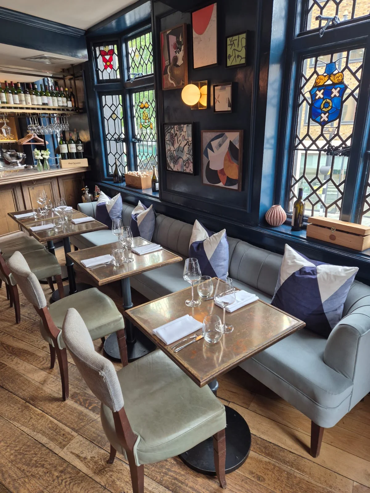 The newly upholstered sofas and banquettes perfectly enhance Clarette’s refined interior, offering guests a luxurious and comfortable seating experience. The rich yet understated tones of the chosen fabrics bring depth and warmth to the room, creating an inviting atmosphere that reflects the sophistication of Clarette’s dining and wine experience.